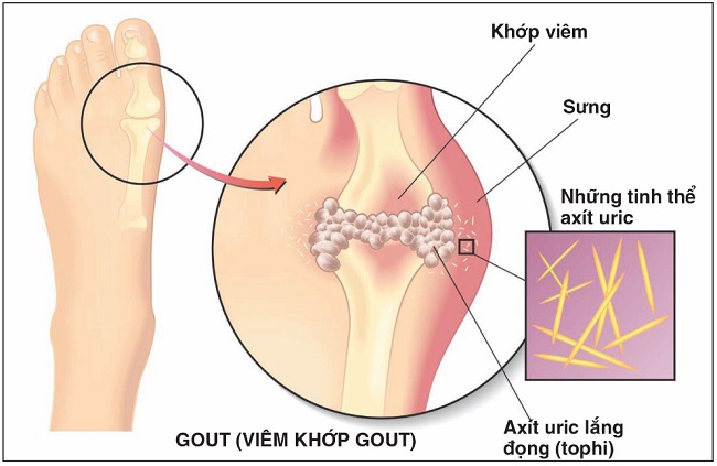 BS.CKI. Cao Thanh Ngọc - Trưởng Đơn vị Nội cơ xương khớp Bệnh viện Đại học Y Dược TP.HCM (BV. ĐHYD) cho biết gout là bệnh lý do sự rối loạn chuyển hóa nhân purin, làm tăng acid uric trong máu, dẫn đến lắng đọng các tinh thể urate ở các mô. Gout biểu hiện bằng những đợt viêm khớp cấp tính và sau đó tiến triển thành mạn tính. Triệu chứng đặc trưng của cơn gout cấp là khởi đầu đột ngột với tình trạng sưng, nóng, đỏ, đau dữ dội thường ở một khớp, đặc biệt là khớp ngón chân cái, làm hạn chế vận động. Bệnh gout thường ảnh hưởng đến các khớp ở chi dưới. Khi bệnh gout nặng hơn hoặc tiến triển mạn tính, nhiều khớp có thể bị ảnh hưởng cùng một lúc dẫn đến đau và cứng khớp, hình thành hạt tophi ở khớp, bệnh thận do gout.
