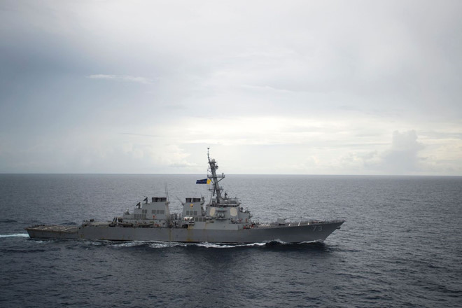 Tàu khu trục USS Decatur của Hải quân Mỹ tuần tra trên Biển Đông hồi tháng 10/2016. Ảnh: Getty.