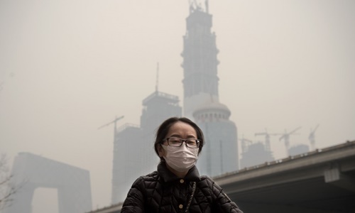 Bầu trời Bắc Kinh mờ mịt vì khói bụi. Ảnh: AFP.