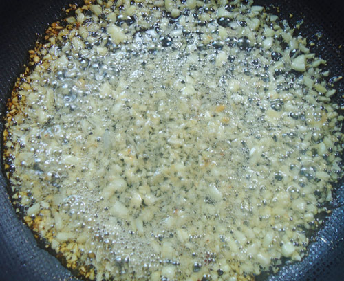 - Bước 3: Đặt chảo lên bếp, cho 2 thìa súp dầu ăn vào đun nóng rồi trút tỏi băm nhỏ vào phi thơm, đến khi tỏi dậy mùi và chuyển sang màu vàng nhạt thì tắt bếp, tiếp tục đảo nhanh tay, vì sau khi tắt bếp dầu còn độ nóng cao nên các bạn chú ý quan sát khi tỏi chuyển màu hơi vàng thì tắt bếp ngay kẻo làm cháy tỏi. Chuẩn bị 1 chiếc đĩa sâu lòng chịu được nhiệt, trải miến đều xuống phía dưới đĩa rồi đặt từng con tôm lên trên miến, phần lưng hướng lên trên, rưới phần tỏi phi này vào khe rạch trên lưng tôm, rồi rưới đều lên toàn bộ đĩa tôm. Đun sôi nước trong nồi hấp rồi đặt đĩa đựng tôm vào hấp trong khoảng 10 - 12 phút là tôm và miến chín.