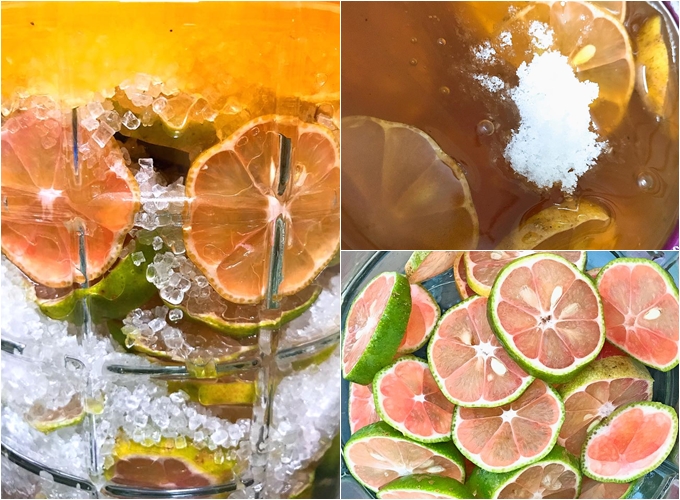 - Rửa sạch chanh đào, ngâm nước muối loãng khoảng 30 phút sau đó vớt ra để ráo.