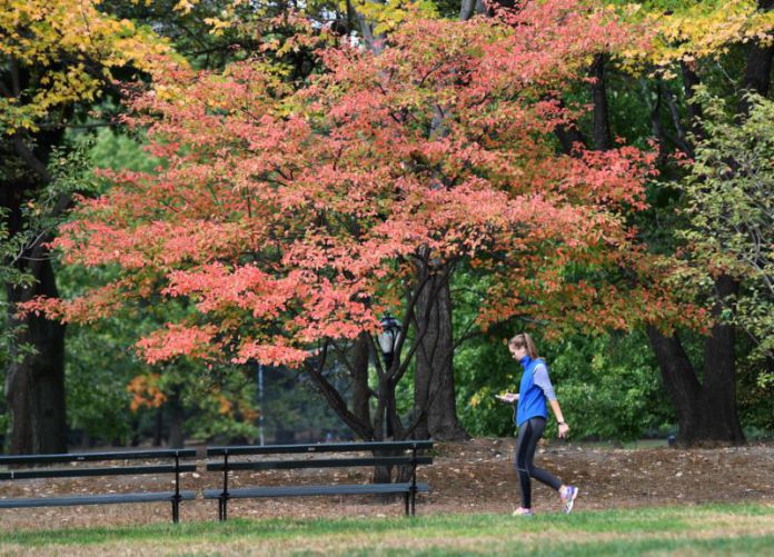 Cảnh lá cây đổi màu tại công viên Central Park ở thành phố New York. (Hình: Don Emmert/AFP/Getty Images)
