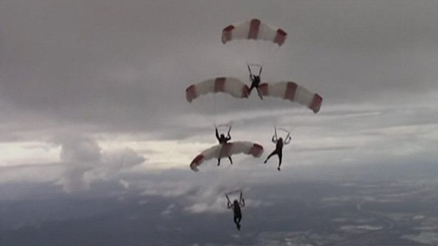 Cuối cùng, hai người nhảy dù đã có thể tách nhau ra, tung dù dự phòng ở độ cao 700m.