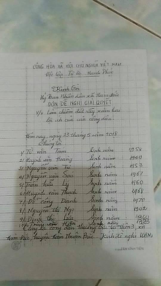 Dân có đề nghị với chính quyền vào ngày 15 tháng 8 năm 2018 trong lúc tiếp xúc cử tri về việc lấn chiếm đất trên. Các đại biểu có trả lời bà con phải tìm ra người lấn chiếm mới giải quyết.