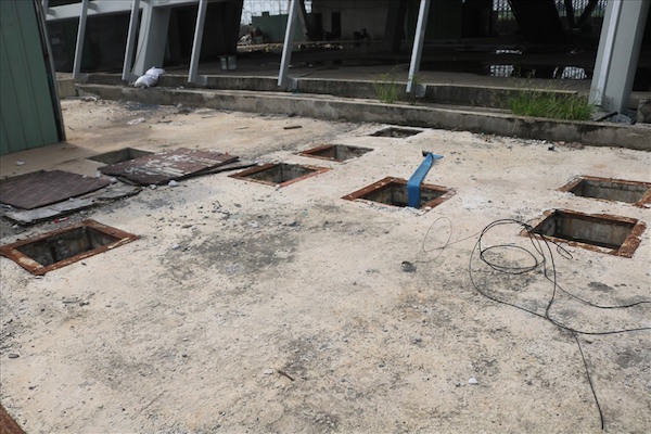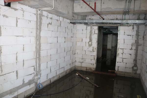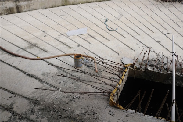 Bên trong công trình thì nước ngập lênh láng và chưa có dấu hiệu nào cho thấy công trình sắp hoàn thành.