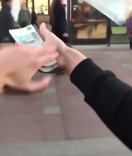 Ngày 12/10, trang Metro đăng tải đoạn video ngắn cho thấy một người đàn ông đeo mặt nạ đính cườm, không rõ tên tuổi đã rải sấp tiền mặt trị giá 572 bảng (khoảng 18 triệu đồng) trên một con phố ở Nga.