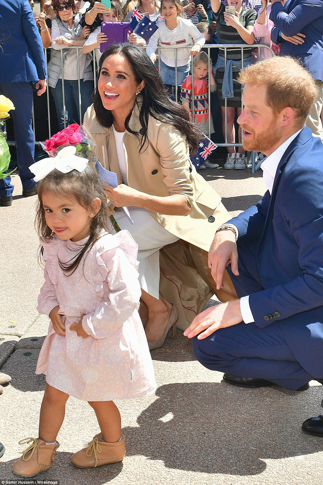 Khoảnh khắc tình cảm ngọt ngào của cặp đôi. Những người hâm mộ cho biết họ đã nhận được những sự đáp trả vô cùng lịch thiệp và dịu dàng từ Hoàng tử và Công nương khi chúc mừng cô Meghan có tin vui. “Cô ấy là người ngọt ngào nhất trên đời”, người hâm mộ Lulu Hogan nói. (Ảnh: MP)