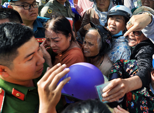 Hàng chục người cầm băng rôn đến, song ai có giấy mời mới được vào trong. Khá đông người la hét phản đối, xô đẩy hàng rào bảo vệ, hoặc chặn đầu các ôtô biển xanh... khiến cả khu vực náo loạn. Cảnh sát và lực lượng chức năng quận 2 nỗ lực giải thích, thuyết phục, và ổn định tình hình.