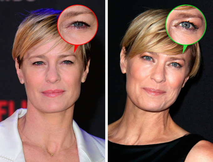Mí mắt trên chảy xệ khiến gương mặt bạn trông mệt mỏi, kém sức sống. Các chuyên gia khuyên nên sử dụng phấn mắt màu nude cho vùng bầu mắt còn khóe mắt có thể dùng các gam màu sáng hơn nhằm "đánh lạc hướng".