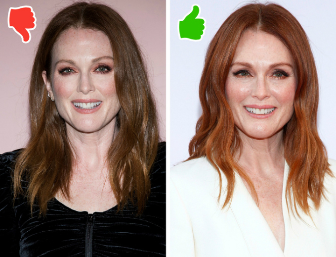 Thay đổi màu tóc giúp gương mặt trông sáng hơn, trẻ trung hơn. Tuy nhiên, cần chú ý chọn màu nhuộm phù hợp với nước da và kiểu tóc để không làm "phản tác dụng". Nên ưu tiên các gam màu tạo cảm giác ấm áp, sang trọng thay vì quá rực rỡ, nổi bật.