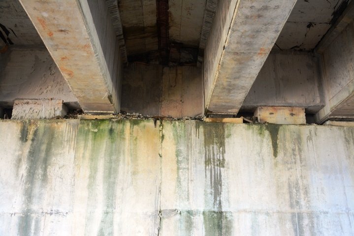 Nhiều vị trí dưới dầm cầu, bị hoen ố, lầy lội, hai bên thành nước vẫn rỉ xuống, nhiều vết rêu mốc đã có từ trước. Đặc biệt, đoạn nối phần dầm cầu với bố cầu lộ ra những tấm ván gỗ, bẹ chuối dưới, dòng nước theo những tấm ván này chảy xuống dầm cầu. Ngoài ra hệ thống ống nhựa trên trần cầu chui này cũng bị thấm dột nước.