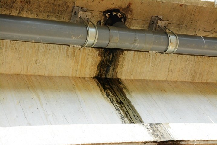 Phần rãnh giữa cầu nước chảy nhỏ giọt sau trận mưa