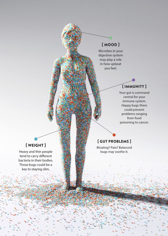 Phải tới một vài năm gần đây, các nhà khoa học mới đo đạc lượng vi sinh vật trên cơ thể người. Kết quả cho thấy trên da và bên trong cơ thể bạn có ít nhất 38 nghìn tỷ vi khuẩn sinh sống, nhiều hơn cả tổng lượng tế bào của chính bạn.