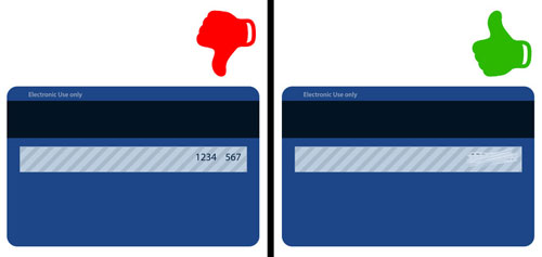 Đối với thẻ visa, để ngăn chặn bất cứ ai sử dụng thẻ của bạn để mua sắm trực tuyến, bạn nên xóa số CVV (3 số cuối ở mặt sau thẻ). Bạn hãy lưu lại và giữ nó ở một nơi an toàn hoặc đơn giản là ghi nhớ nó.