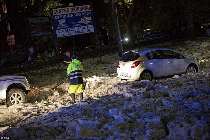Tại một số khu vực của thành phố Rome, người dân phải trải qua hiện tượng thời tiết khắc nghiệt gồm mưa đá, lũ lụt và gió lốc. (Ảnh: Getty)