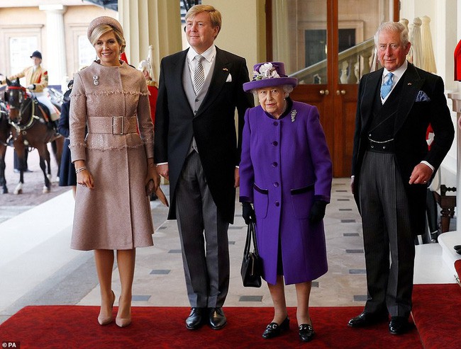 Thái tử Charles cùng Nữ hoàng Anh chào đón sự xuất hiện của vợ chồng Quốc vương Hà Lan.