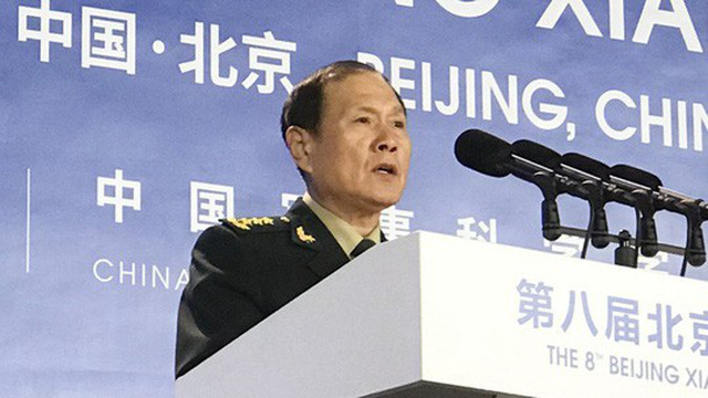 Bộ trưởng quốc phòng Ngụy Phượng Hòa phát biểu tại diễn đàn. Ảnh: SCMP
