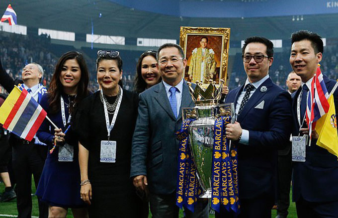 Cố Chủ tịch Vichai và con trai Aiyawatt nâng chức vô địch Ngoại hạng Anh mùa 2015-2016 bên các người thân trong gia đình. Ngoài Aiyawatt, ông Vichai còn hai người con khác, là Apichet và Voramas. Cả ba đều có chân trong ban giám đốc của Tập đoàn King Power. Dù vậy, Aiyawatt (thứ hai từ phải sang) vẫn là cái tên sáng giá hơn cả kế thừa người cha quá cố giữ cương vị đứng đầu Leicester, trong trường hợp gia đình Srivaddhanaprabha tiếp tục muốn sở hữu đội bóng nước Anh.