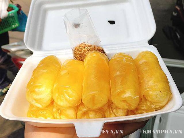 Bánh cuốn ngọt có vỏ bánh màu vàng mềm mịn, bên trong cuộn nhân dừa đỗ rắc mè rang ăn cùng. Chỉ khoảng 20.000 đồng là bạn đã có một bữa sáng no bụng.