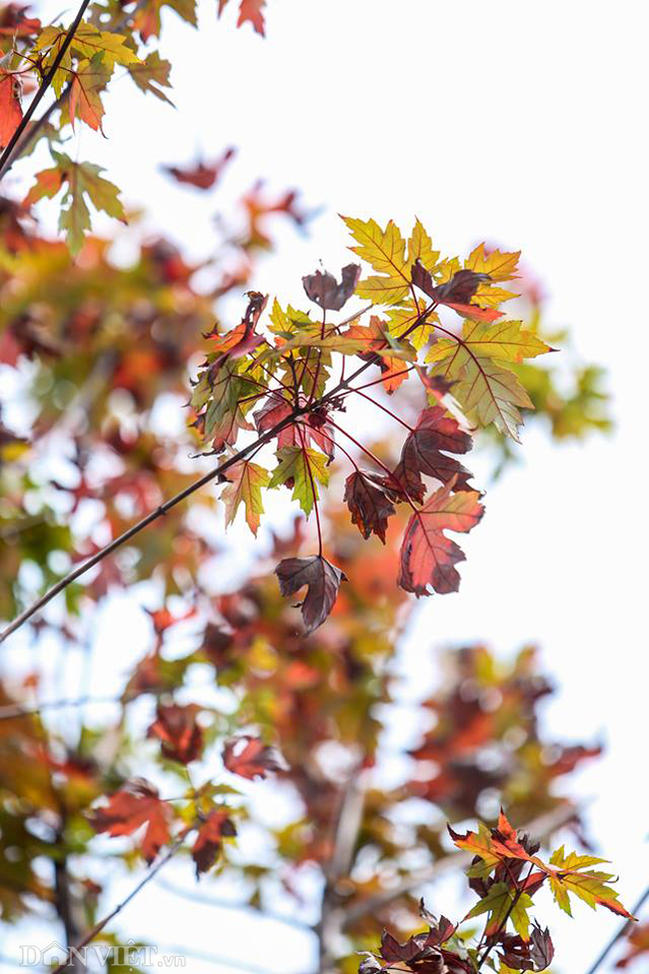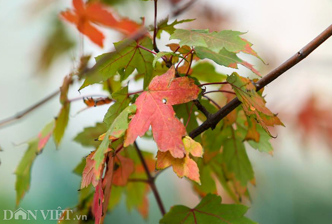 Những cây phong ở khu vực trước tòa nhà Vincom trên đường Nguyễn Chí Thanh khiến cho nhiều người đi đường thích thú.