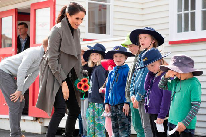 Khi tới một quán cà phê ở thành phố Wellington, New Zealand, để thảo luận về vấn đề chăm sóc sức khỏe tâm thần với một nhóm cư dân địa phương, bà bầu của hoàng gia Anh nhìn thấy một nhóm học sinh đứng chờ bên ngoài để được gặp vợ chồng cô.