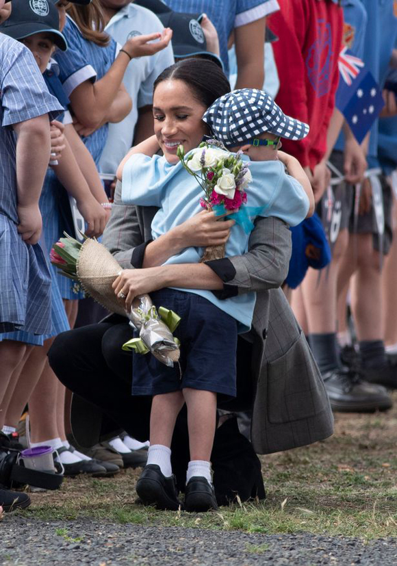 Cậu bé mắc hội chứng Down, Luke Vicent (5 tuổi), đã chạy đến ôm chầm lấy Meghan và được cô ôm lại, trong chuyến thăm thành phố Dubbo, bang New South Wales, hôm 17/10. Ngoài ra, Meghan cũng trao những cái ôm ấm áp tới nhiều trẻ em khác trong suốt chuyến công du.