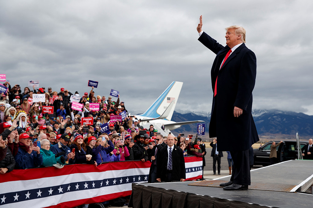 Tổng thống Donald Trump vẫy tay với người ủng trong một cuộc vận động diễn ra tại sân bay quốc tế Bozeman Yellowstone, bang Montana. Ảnh: AP