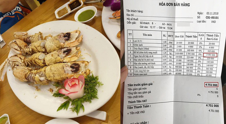 Trước đó, hàng loạt vụ chặt chém khi đi ăn nhà hàng cũng được báo chí phơi bày. Nhớ lại vụ nhờ hấp 14 kg tôm, nhóm khách Hà Nội phải trả 2,8 triệu đồng khi đi du lịch Sầm Sơn.