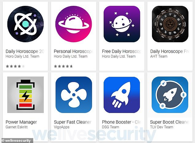 ESET cho biết các ứng dụng chứa mã độc này ẩn giấu dưới dạng những tiện ích như ứng dụng quản lý pin, ứng dụng xem tử vi...
