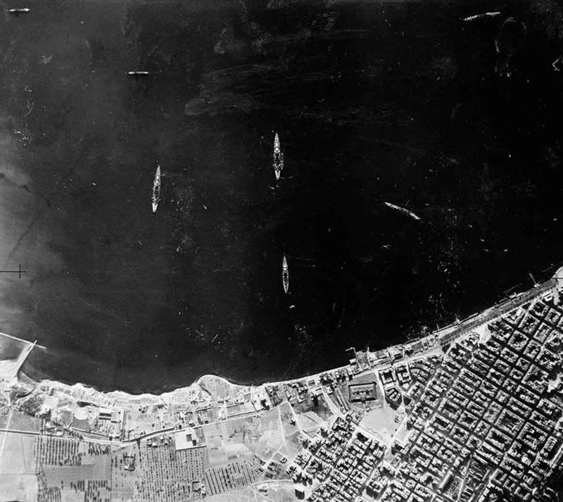Ảnh chụp cảng Taranto sau trận hải chiến cho thấy Hải quân Italia bị tổn thất nặng nề. Ảnh: today.com
