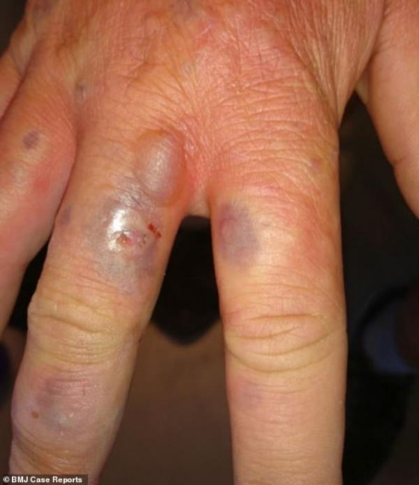 Các bác sĩ đã chẩn đoán anh bị viêm phytophotodermatitis , trong đó hóa chất thực vật trên da phản ứng với ánh sáng từ tia cực tím mặt trời gây ra các phản ứng.