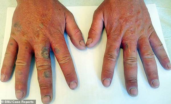 Chàng trai này giải thích thêm: “Tôi nhớ lúc ở trên đảo, tôi đã dùng chanh tươi trong bữa tối. Tôi đã vắt hết nước cốt chanh vào trong chai nước để chuẩn bị cho chặng đường dài vào ngày mai. Tôi đã đi bộ 1 đoạn đường rất dài khoảng dưới cái nắng gay gắt suốt 10-12 tiếng. Một vài ngày sau thì tay tôi xuất hiện những vết nhỏ màu tím như thế này”.