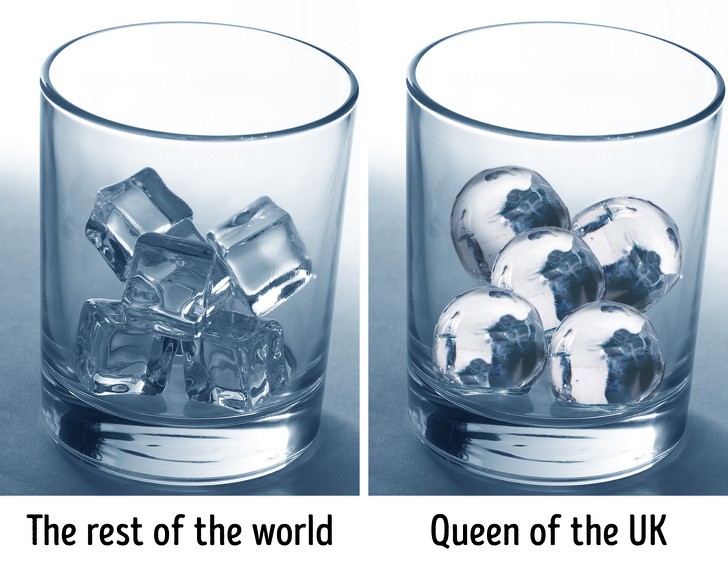 Khác với hầu hết mọi người đều uống đá viên hình khối lập phương (hay 1 dạng hình méo mó nào đó), Nữ hoàng Elizabeth II chỉ thích đá viên hình cầu, vì âm thanh của nó khi va vào cốc nghe "dễ chịu, du dương" hơn!