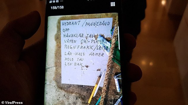 Nạn nhân được tìm thấy khi đang mặc quần short, đi giày thể thao và mặc một chiếc áo mưa giấy. Một sợi dây thừng bằng nhựa màu đỏ dài quấn quanh cổ nạn nhân và sợi dây đó được gắn vào vòi cứu hỏa trên mái tòa nhà. Theo khám nghiệm ban đầu, cảnh sát tìm thấy hàng chục vết dao đâm cũng như vết đạn xuyên qua sọ của nạn nhân, và họ cũng tìm thấy dao và một ghi chú bằng tiếng Na Uy trong phòng ở tầng 23 của nạn nhân. Ghi chú đó có vẻ như là một danh sách bao gồm các từ như là "áo mưa", "vòi", "dây".