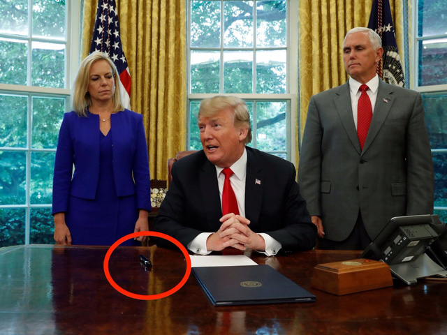 “Tôi đã ký văn bản bằng một chiếc bút đắt tiền và tôi không thể viết nổi với chiếc bút đó. Đó là chiếc bút tồi tệ và cực kỳ đắt đỏ. Sau đó, tôi quyết định dùng chiếc bút dạ Sharpie và tôi cho rằng chiếc bút này viết tốt hơn hẳn chiếc bút đắt tiền, hơn nữa giá thành của nó rất rẻ”, ông Trump lý giải.
