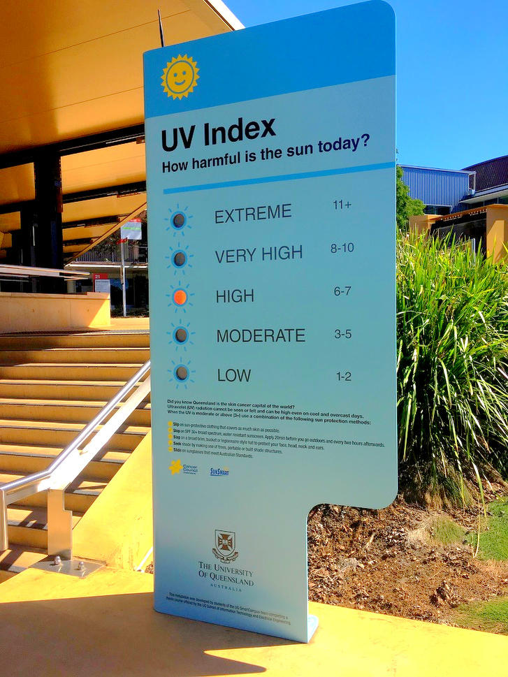 Mọi người Úc đều biết tầm quan trọng của việc bảo vệ làn da khỏi ánh mặt trời. Thật dễ dàng để bị cháy nắng ở đây và để tránh nó, có những bảng đặc biệt cho thấy ngoài trời đang nắng nóng đến mức nào. Sử dụng bảng, bạn có thể tìm thấy thời gian an toàn nhất để ở bên ngoài và chọn kem chống nắng phù hợp.