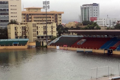 Sân vận động 19-8 Nha Trang ngập trong biển nước. Ảnh: X.B
