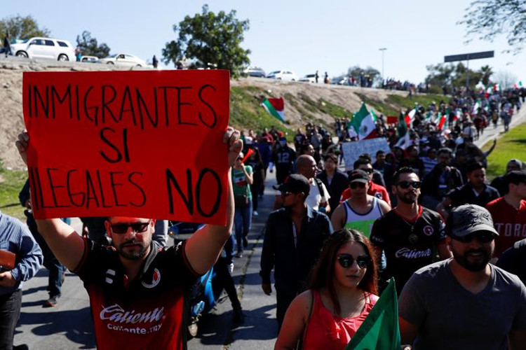 Rất đông người tham gia vào cuộc biểu tình phản đối đoàn người di cư Trung Mỹ ở Tijuana hôm 18/11.