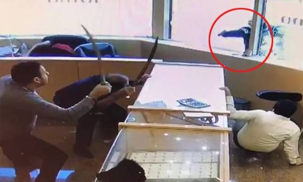 Tuy nhiên, khi bọn chúng chưa kịp thực hiện vụ cướp thì các nhân viên cửa hàng đã cầm kiếm xông tới chém liên tục về phía cửa sổ. Trước sự chống trả quyết liệt của họ, những tên cướp đành phải nhanh chóng rút lui. Cảnh sát ập đến ngay sau đó nhưng băng cướp này đã kịp thời chạy khỏi hiện trường.