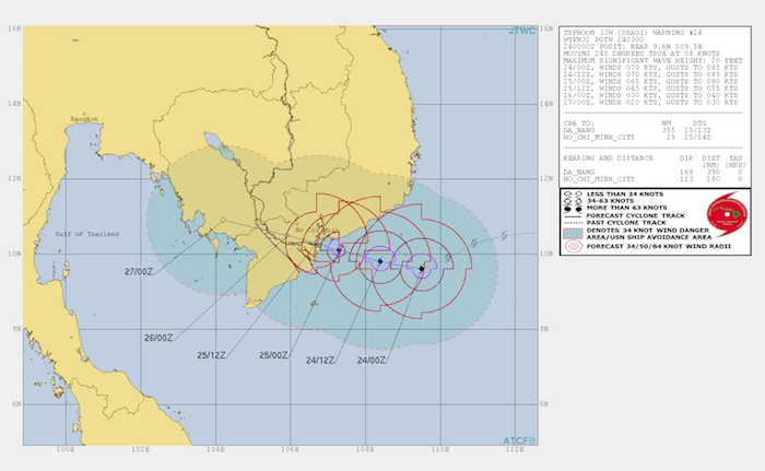 1. Đường đi của cơn bão USAGI - cơn bão số 9 vừa được JTWC và Cơ quan Khí tượng Nhật Bản điều chỉnh về phía Nam hơn nữa, nghĩa là cơn bão sẽ đổ bộ vào bờ biển tỉnh Bến Tre - Vĩnh Long. Toàn bộ khu vực miền Nam thuộc các tỉnh Bến Tre, Vĩnh Long, Trà Vinh, Cần Thơ, Long An, Đồng Tháp, An Giang, Kiên Giang sẽ bị ảnh hưởng lớn bởi cơn bão này.
