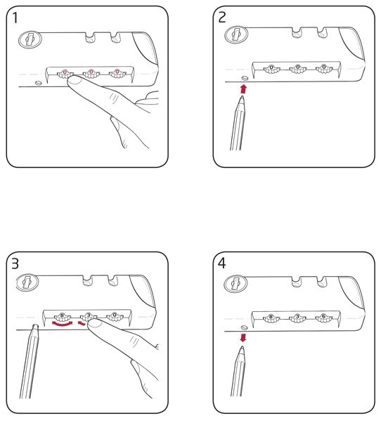Khi thấy 3 lỗ thẳng hàng, hãy xem những con số bên ngoài đang là gì. Yên tâm, đó chưa phải là mã đúng của bạn đâu.
