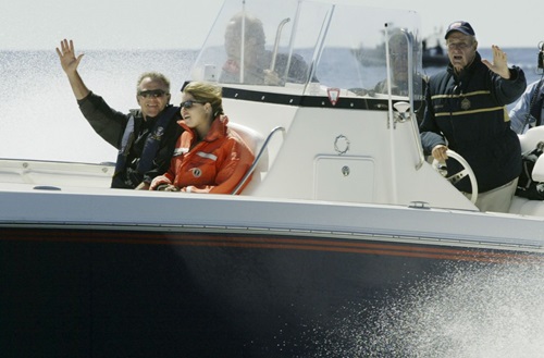 Bush "cha" (phải) đi đánh cá cùng con trai là Tổng thống George W. Bush tháng 4/2004. Ảnh: AP.