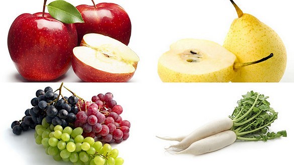Kỵ với lê, táo, nho: Hàm lượng cetan đồng có trong các loại trái cây này sẽ phản ứng với axit cianogen từ củ cải gây ra triệu chứng bướu cổ, suy tuyến giáp nặng nếu thường xuyên uống loại nước ép hỗn hợp này. Ảnh: Internet