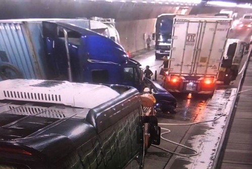 Old  Default Kinh hoàng cảnh xe đầu kéo container đâm trực diện xe tải trong hầm Hải Vân
