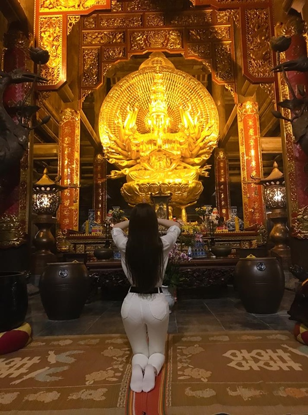 Sau ồn ào "đi khách ngàn đô", Á Hậu Thư Dung đăng ảnh đi chùa bị chửi dữ dội vì khiêu gợi