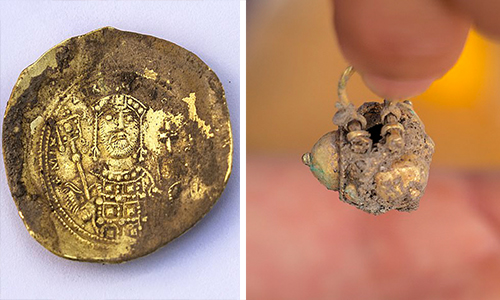 Theo UPI, hũ đồng chứa đồng xu vàng và khuyên tai mới được tìm thấy ở thành phố cổ Caesarea. Chiếc hũ đồng và những đồng xu giá trị bên trong có niên tại từ thế kỷ 11.
