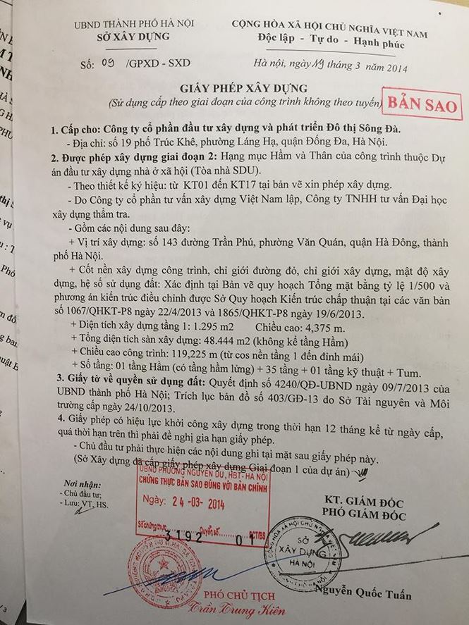 Theo tìm hiểu của phóng viên, ngày 19/3/2014 Sở Xây dựng Hà Nội cấp phép cho Công ty CP đầu tư xây dựng và phát triển đô thị Sông Đà thực hiện dự án nhà ở xã hội 143 Trần Phú với 1 tầng hầm, 35 tầng nhà ở, 1 tầng kỹ thuật và tầng tum. Sau khi tòa nhà được đưa vào hoạt động, nhiều vi phạm của Công ty CP Đầu tư xây dựng và phát triển đô thị Sông Đà đã bị cơ quan chức năng phát hiện, xử phạt.
