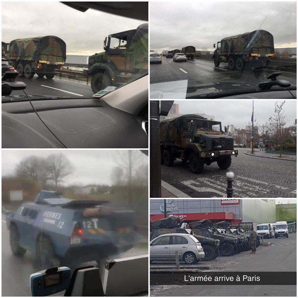 Các hình ảnh về đoàn xe bọc thép đang trên đường tới Paris chống biểu tình. Ảnh: Twitter
