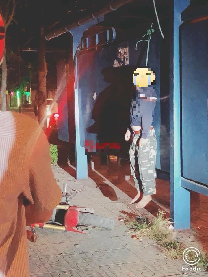 Hình ảnh được chia sẻ trên mạng xã hội nam thanh niên treo cổ ở nhà chờ xe buýt khiến nhiều người xôn xao.