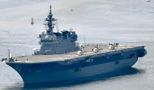 Tàu sân bay trực thăng Izumo của Hải quân Nhật sẽ được nâng cấp thành tàu sân bay để vận hành các máy bay chiến đấu tàng hình F-35 mua của Mỹ (Ảnh: AP)
